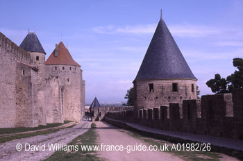 are described in this article. Simon de Montfort took the castle in 1209 and used it as his headquarters until his death in 1218; after that, his son gave the city to King Louis IX. Louis and his son Philip III added the outer walls, making the fortification virtually impregnable. As the French state expanded and took Roussillon, the castle lost its importance as a frontier fortification and the buildings fell into disrepair. In the 1830s attention was turned to restoring the decaying Cité and in1844 the architect Viollet-le-Duc was charged with this mammoth task. |