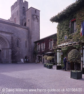 The road continued to the busy hub of Place Marcou, an atmospheric suntrap ringed with restaurants and with the central area almost completely given over to tables. There was little room for the square`s centrepiece, a little fountain topped by a bust of Monsieur Marcou. Many of the diners were shaded by trees or by parasols but we declined the waitress` kind offer of a parasol in order to enjoy the welcome warmth of the October sun. Cassoulet (a traditional bean stew) was one of our restaurant`s specialities, and was being enjoyed by many of our fellow diners, but we opted for Salade de chèvre chaud au miel (salad of warm goat cheese with honey) and Salade tiède de saucisson de couenne et pommes de terre persillées (potato salad with sausage of couenne). Delicious. At the next table, a young girl was so pleased with her meal that she spent the time between courses sending a text message home extolling the virtues of her cassoulet. After lunch I followed the narrow alleyway of Rue St Sernin which ran past a little shop selling tapestries before meeting Rue Cros-Mayrevieille. At a shop selling plastic medieval weapons one young girl was encouraged by her father to try on the plastic "armour" and brandish the plastic "weapons" so he could take a picture of her. I wondered what Monsieur Cros-Mayrevieille would have thought of this.