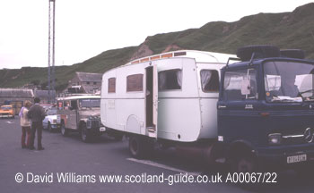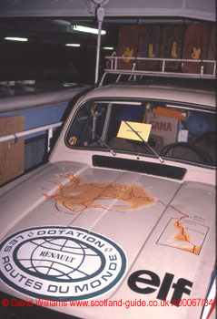 One older French couple were driving a lorry with a caravan precariously perched on top. I reckoned the French and the Germans easily outclassed every other nationality so the French took a well-deserved top place in the explorers` hierarchy, with the Germans taking second place. The Italians came next, not for their 4x4 vehicles, but their fancy motorcaravans; however, judging by the number of passengers they carried, I reckoned they would each have less living space than I would have in my small tent. After everyone had checked where they belonged in the social order, we were given the signal to start boarding the ferry. The big 4x4s were put on the main car deck as their tall and overloaded roof-racks required the extra height. Those of us in wee cars had to drive up a steep and extremely narrow ramp and then squeeze into the top gallery. At least our wee cars looked down on the 4x4s for the duration of the crossing. The car decks` doors closed and the ship was preparing to move off the quayside when someone spotted a motorcyclist racing towards the ferry. It was too late to use the loading ramp so his bike was lifted up to the deck by a fork-lift truck. The Germans always do it in style. We were now ready. The ship let out a loud blast on its horn. A large lump appeared in my throat and my eyes moistened. We were on our way - Iceland here I come ! Postscript