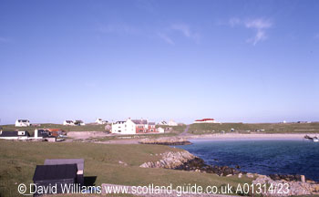 You would think Kodak sponsored the Waverley. A whole island to explore and only about an hour to do it in. A bus trip using all (i.e. both) of the island's buses is available but most people choose to wander towards Scarinish, the island's main settlement. Sheep graze on the machair, but there is little shelter for them on the windswept fields. Glorious Gott Bay stretches northwards, ringed by machair, dunes and the occasional house. Just offshore are eider ducks and a lone heron, patiently waiting for its next meal to swim by. The first