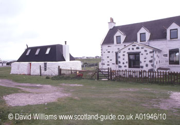 A winding road leads past the war memorial, skirts the island's collection of oil storage tanks, and then gradually rises to Scarinish, a collection of individual houses seemingly placed almost indiscriminately on the rolling grassy landscape. Most homes are only one storey high; at least one house has a thatched roof, while others have a felt roof which should be more able to withstand the high winds which the island "enjoys". Tiree, after all, is the country`s best windsurfing venue. Trees are conspicuously few in number and are only growing near the widely-spaced houses. The sun makes another welcome appearance; however, most passengers reluctantly curtail their exploration and start to make their way back to the pier. Noisy lapwings and seagulls fly overhead while songbirds chirp from their perches on fences and buildings. It would be an idyllic and tranquil moment but for the fact that 450 other people have also invaded this otherwise-peaceful place. Many passengers
